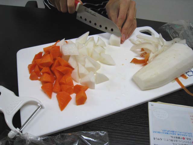断面が多くなるので、火が通りやすくなる切り方です。煮物や炒め物など。